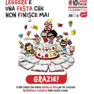 Si sono conclusi, anche quest’anno, i 10 giorni dedicati a #ioleggoperche’, durante i quali numerose classi del nostro istituto hanno partecipato agli incontri di lettura organizzati presso le librerie gemellate, Mondadori Bookstore e Libreria Spartaco di SMCV. Si ringraziano tutti i nostri alunni e i loro genitori che con entusiasmo hanno partecipato agli incontri ed hanno donato tanti libri che avvicineranno gli studenti alla lettura e andranno ad arricchire, poi, la nostra biblioteca scolastica.