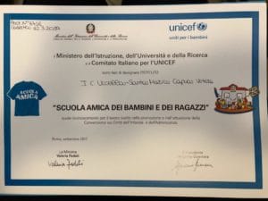 IL Ministero dell’Istruzione, dell’Università e della Ricerca e il Comitato Italiano per l’UNICEF sono lieti di designare l’ISTITUTO STATALE “R. UCCELLA di Santa Maria Capua Vetere “SCUOLA AMICA DEI BAMBINI E DEI RAGAZZI” quale riconoscimento per il lavoro svolto nella promozione e nell’attuazione della Convenzione sui Diritti dell’Infanzia e dell’Adolescenza.